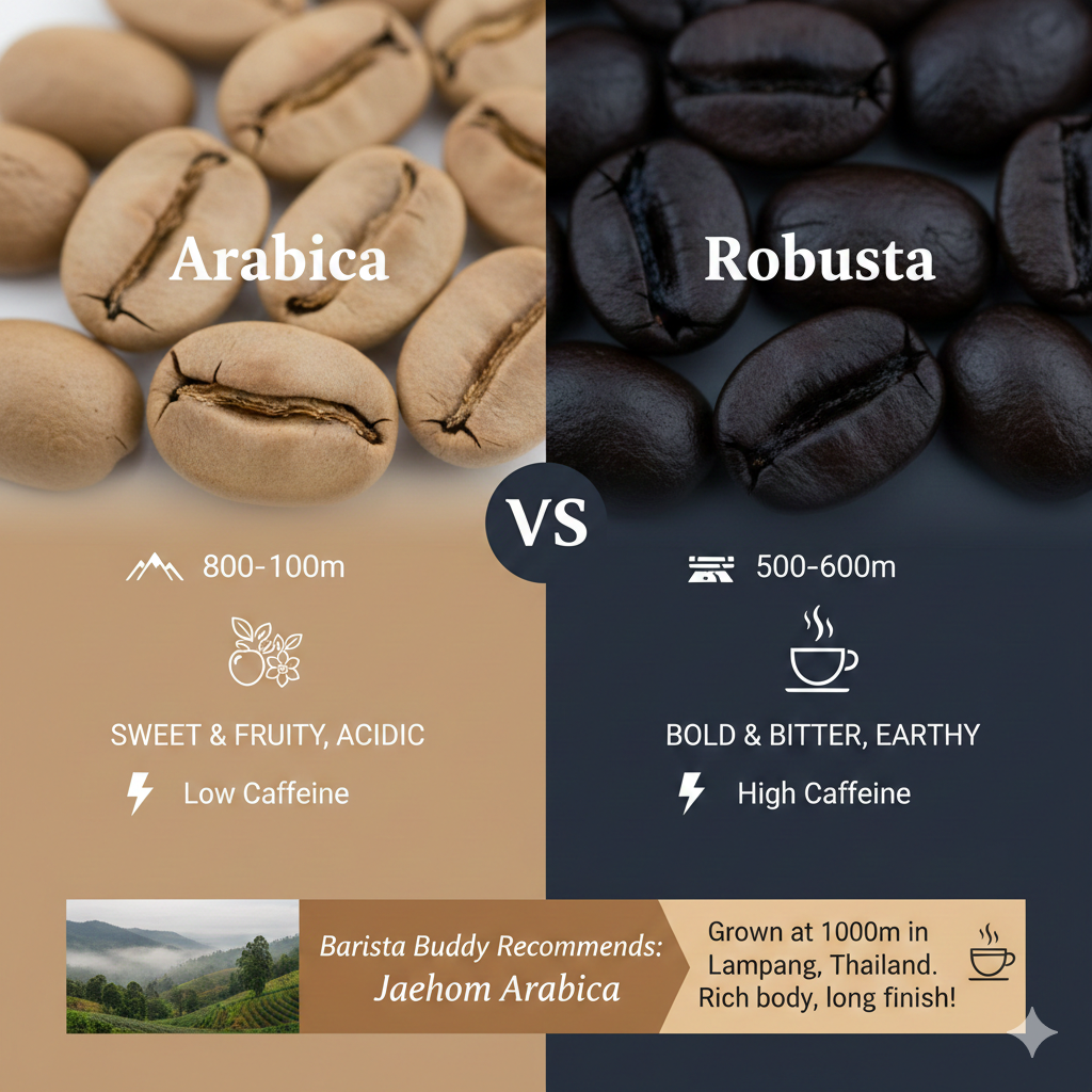 หลายคนอาจจะคิดว่า "กาแฟก็คือกาแฟ" เหมือนกันไปหมด แต่ในความเป็นจริง กาแฟสองสายพันธุ์หลักอย่าง อาราบิก้า (Arabica) และ โรบัสต้า (Robusta) มีคาแรคเตอร์ที่ต่างกันอย่างสิ้นเชิง!