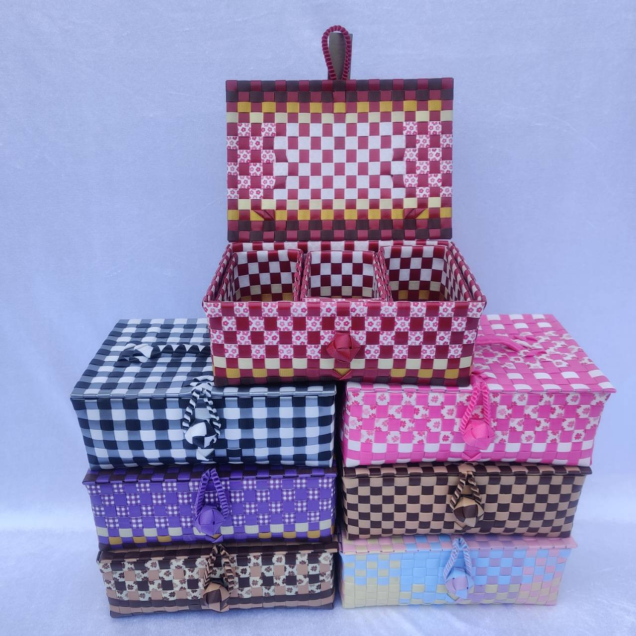 ตระกร้าจ่ายตลาด แม่ลูก 4ใบ 1 SET มีฝาปิด พร้อมหูจับ แม่ ขนาด กว้าง 18.5 ยาว 26 สูง 10 CM ,ลูก ขนาด กว้าง 8.5 ยาว 15.5 สูง 8.5 CM วัดจากขอบปากตระกร้า หูจับพอดีมือ