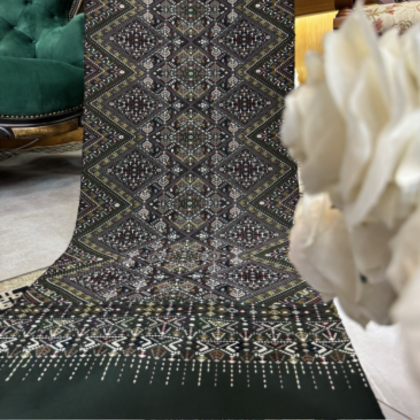 ผ้าคลุมไหล่ไหมแพรวาผืนนี้ มีความโดดเด่นไม่เหมือนใครด้วย “โทนเขียวโบราณ” ซึ่งเป็นสีเฉพาะที่ผูกพันกับวิถีชีวิตและวัฒนธรรมดั้งเดิมของชาวภูไท สีนี้ไม่เพียงแต่หายาก แต่ยังสะท้อนอัตลักษณ์ของมรดกผ้าแพรวาภูไทอย่างชัดเจน