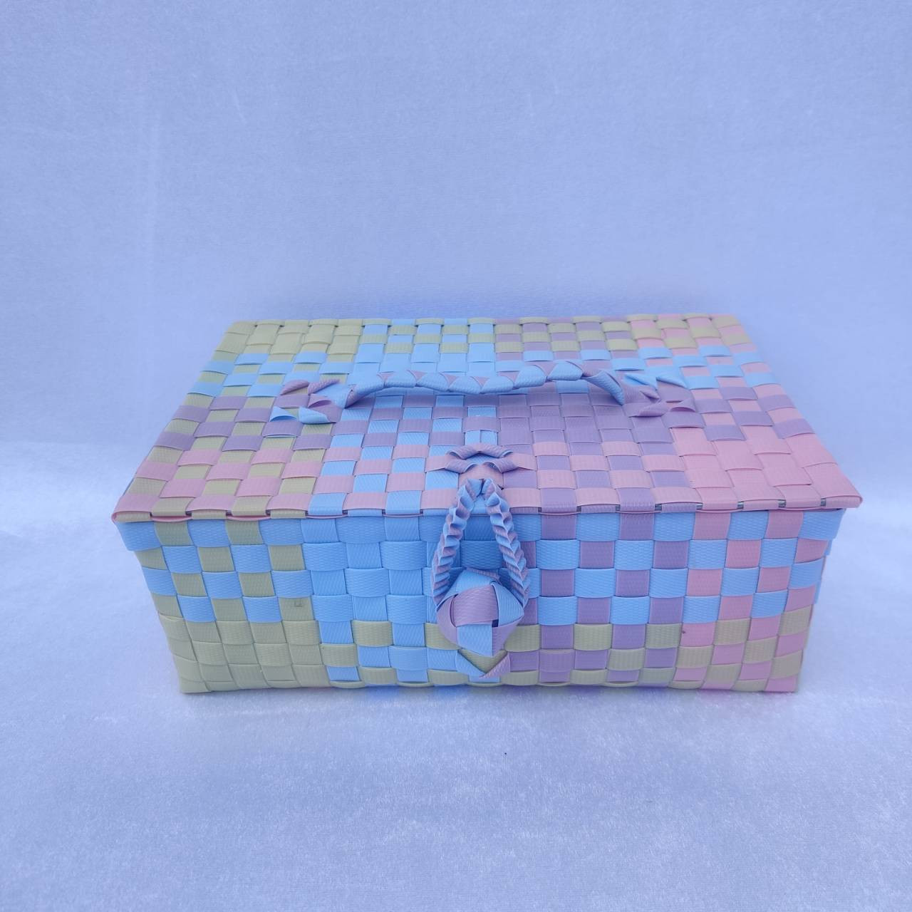 ตระกร้าจ่ายตลาด แม่ลูก 4ใบ 1 SET มีฝาปิด พร้อมหูจับ แม่ ขนาด กว้าง 18.5 ยาว 26 สูง 10 CM ,ลูก ขนาด กว้าง 8.5 ยาว 15.5 สูง 8.5 CM วัดจากขอบปากตระกร้า หูจับพอดีมือ