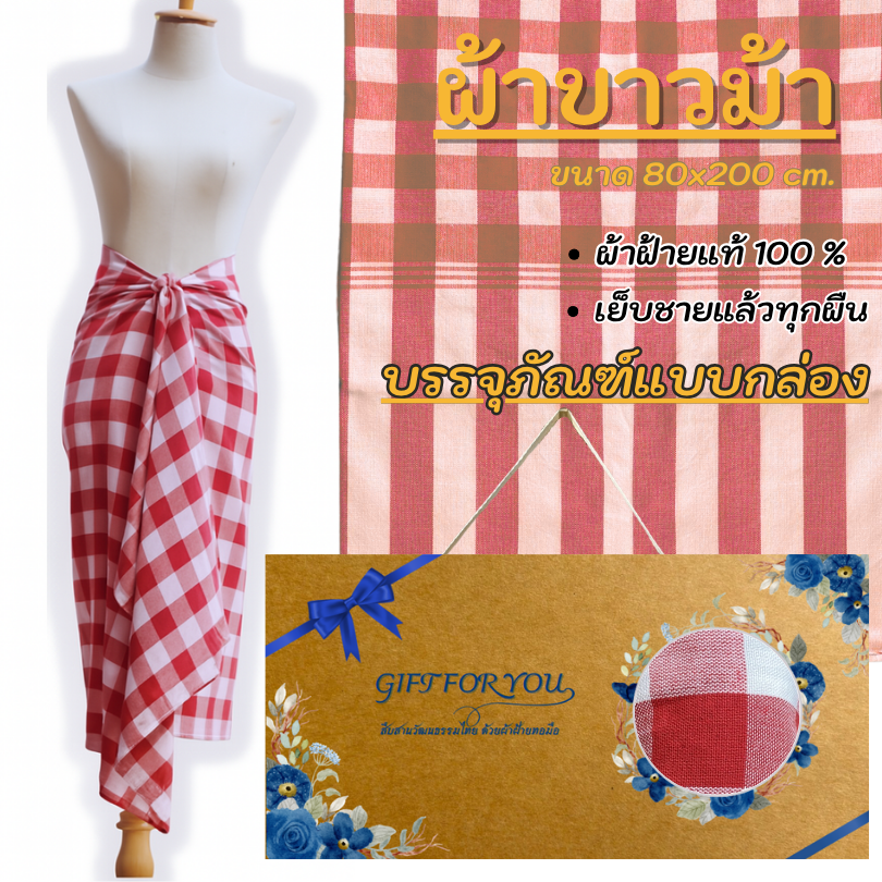 ผ้าขาวม้าฝ้ายทอมือ ขนาด 80x200 ซม.