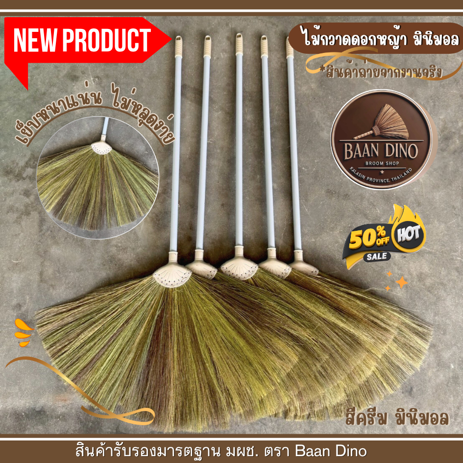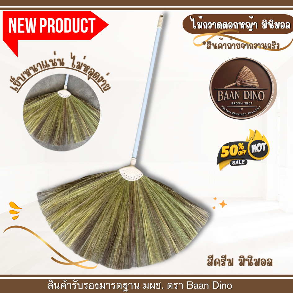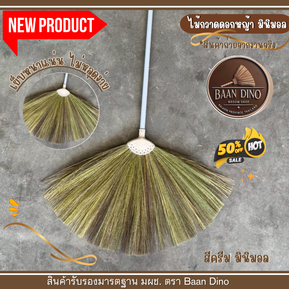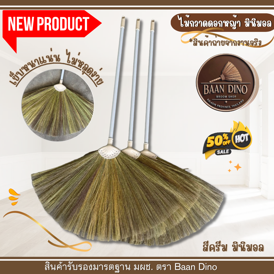 ไม้กวาดดอกหญ้ารุ่นหนาพิเศษทากาว ตัดปลาย (มินิมอล) Baan Dino บ้านไดโน เเน่น ทนทาน ดอกหญ้าเกรดพิเศษ ไม่มีเศษดอก ไม้กวาดดอกหญ้า ด้ามพลาสติก (โรงงานผลิตสินค้าเอง) ราคาส่งสามารถสอบถามเพิ่มเติมได้ค่ะ ใบเสร็จหรือใบกำกับภาษีทักแชทเลยนะคะ ***ราคาสินค้ายังไม่รวมภาษีสำหรับใบกำกับลูกค้าต้องเสียเพิ่มนะคะ >>รายละเอียด<< ดอกหญ้ารุ่นหนาพิเศษเกรดเอ ถักทอจากกลุ่มเเม่บ้าน เเน่นหนา หมดปัญหาดอกหญ้าหลุดร่วงง่าย และไม่มีเศษฝุ่นรบกวนเพราะเราคัดดอกหญ้าเกรดเอ เคาะดอกให้อย่างดี ● แข็งแรง ทนทาน ไม่หลุดง่าย ได้มาตรฐาน ● มัดรวมกันอย่างแน่นหนา ● ดอกหญ้าเกรด A ยากต่อการหลุด ● ด้ามจับไม่หนัก ● สะดวกต่อการใช้งาน ● รับประกันสินค้าทุกสินค้า มีปัญหายินดีเครมสินค้าทุกกรณี (ระวังสินค้าเรียนเเบบ) >> ขนาด << ยาว 70 ซม. น้ำหนัก 250 กรัม/ด้าม >>รายละเอียดการใช้งาน<< ใช้สำหรับทำความสะอาดบนพื้นแห้งภายในบ้านหรือสำนักงาน กวาดทำความสะอาดสิ่งสกปรกต่างๆ ขยะ เศษใบไม้ ได้เป็นอย่างดี จับถนัดมือ ข้อเเนะนำ การกวาดพื้นที่มีความสูงไม่เท่ากันจะต้องกวาดจากที่สูงลงสู่ที่ต่ำ ไม่กดด้ามมากเกินไปจนทำให้ปลายดอกหญ้างอ ขณะกวาดต้องค่อยๆกวาด ไม่ควรเหวี่ยงด้ามไม้กวาดอย่างรวดเร็วเพราะจะทำให้เกิดฝุ่นฟุ้งกระจาย